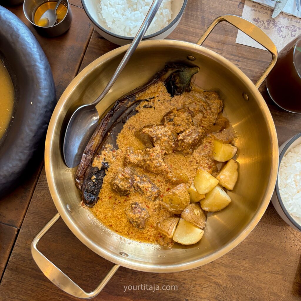 The Lamb Rib Salad paired grilled Margra lamb ribs with Tagaytay mixed greens and a spicy Thai dressing. On the other hand, Lamb Shoulder Curry delivered depth through fresh curry paste, coconut milk, eggplant, and potato. Lastly, the Lamb Balbacua leaned rich and gelatinous, braised in aromatics and Asian spices, served with roasted garlic rice pilaf.