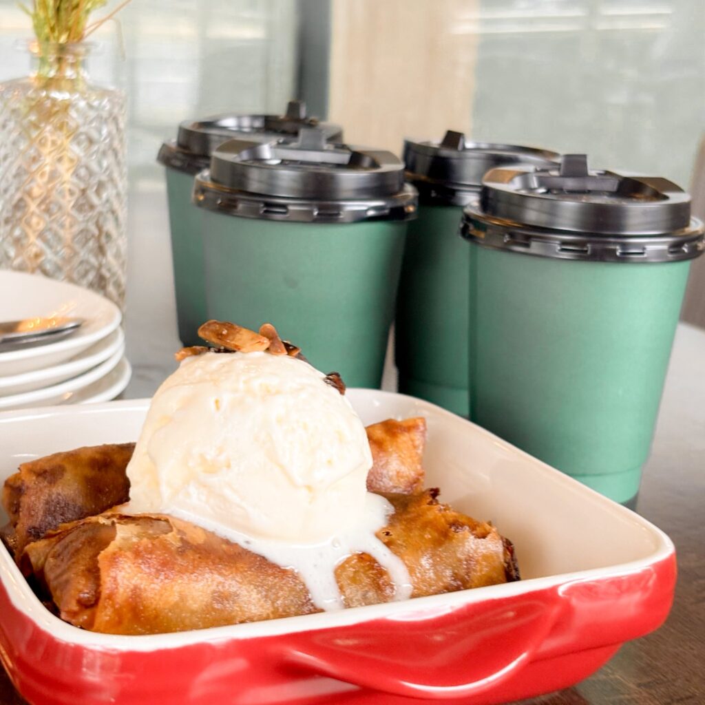 Then comes dessert: Turon Ala Mode. Crisp, warm, and a little messy in the best way, especially when paired with a cup of Tsokolate de Batirol. It’s the kind of merienda that slows down your afternoon and makes you forget the rush outside.