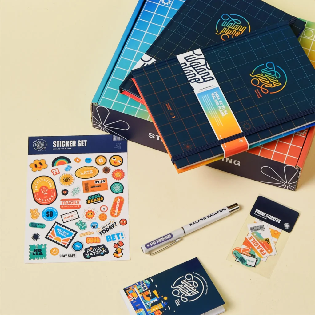 Each box comes with the planner, a pen, a weekly booklet, stickers for your planner and your phone, and a bookmark for P1,099. There’s also a variant called Walang Plano Nude for P999, which has the same inclusions but with a nude, debossed cover.